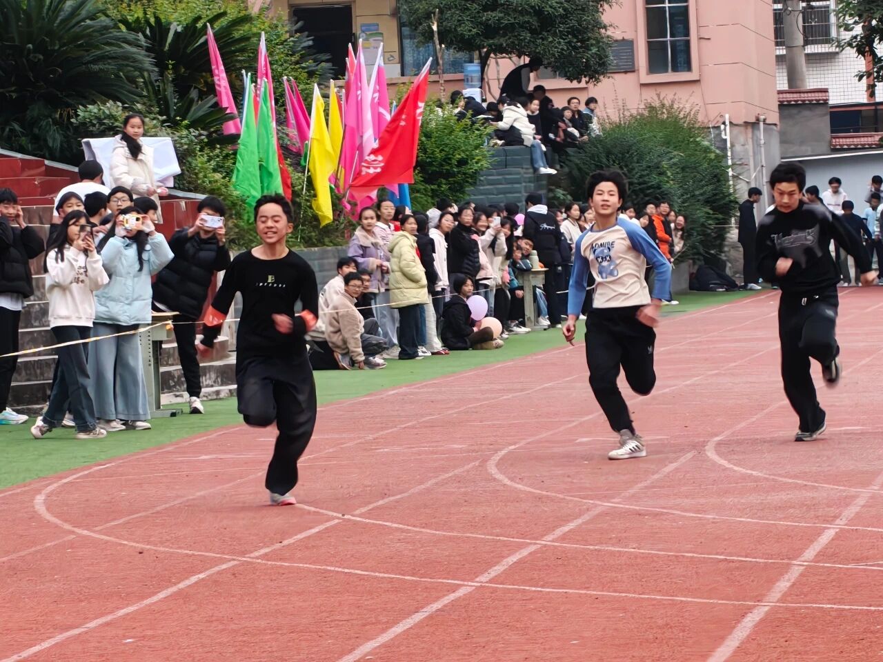 赛场上,运动健儿们全力以赴、奋勇争先。短跑赛道上,他们如离弦之箭冲破终点;长跑征程中,他们咬牙坚持挑战极限;立定跳远垫前,每一次腾空都凝聚着力量;接力赛道上,接力棒传递着团结与信任。赛场边,啦啦队呐喊助威声此起彼伏,志愿者们忙前忙后提供保障,老师们既是裁判也是守护者,全校上下凝聚成一股温暖而强劲的力量,让冬日校园充满热血与温情。