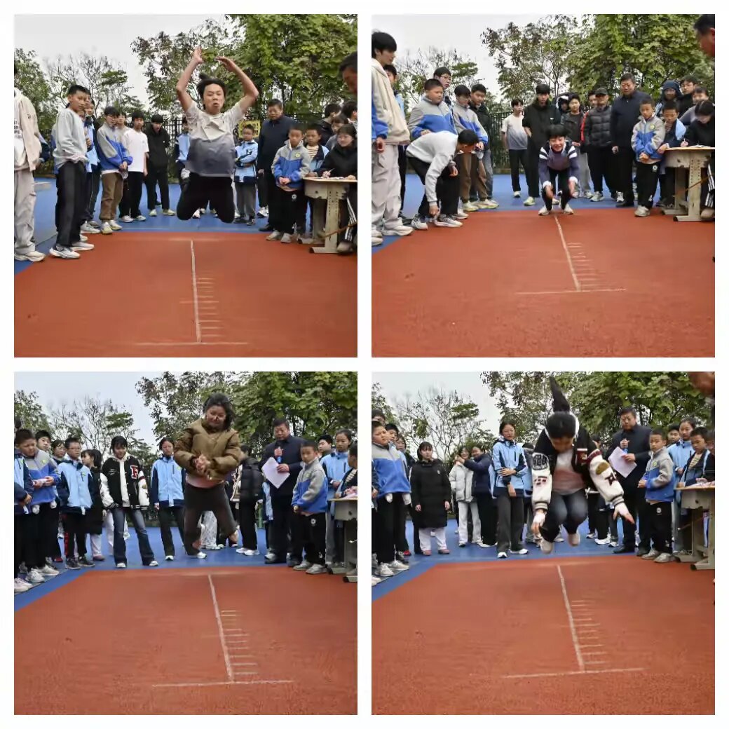 中长跑赛场上,初中女子800米、初中男子1000米项目考验着选手们的耐力与毅力,运动健儿们调整呼吸、稳步前行,即便体力透支也绝不放弃,用坚持诠释着“永不言弃”的运动精神。立定跳远和跳绳赛场上,同学们屏气凝神、全力发挥,一次次突破自我极限,展现出扎实的运动功底。