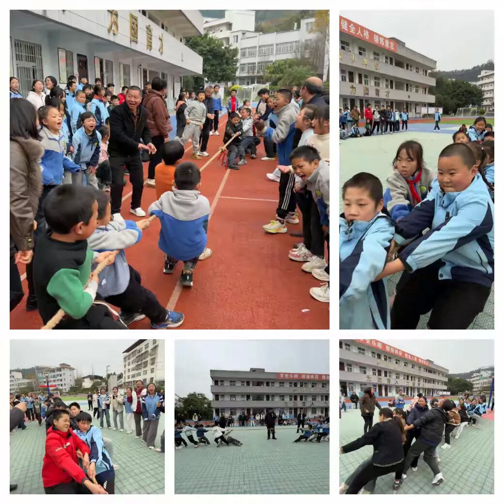 师生互动及教师专属项目更是为活动增添了别样活力,老师滚铁环、腰缠万贯项目中,平日里严谨的老师们化身“运动健将”,动作娴熟又不失幽默,引得同学们阵阵喝彩。中小学拔河、教师队拔河项目中,参赛队员们紧握长绳、齐心协力,场外师生组成“啦啦队”齐声呐喊助威,现场氛围热烈非凡。