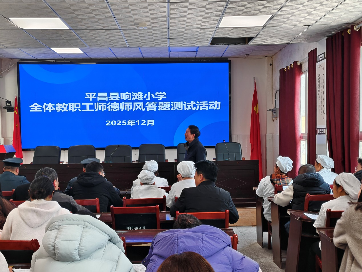 为深入推进师德师风建设,强化全体教职工及临聘人员的责任意识与廉洁自律意识,2025年12月15日,平昌县响滩小学组织全体在岗教职工、食堂工人及保安人员,集中开展师德师风答题测试与警示教育片观看活动,以考促学、以案明纪,筑牢校园育人队伍思想根基。