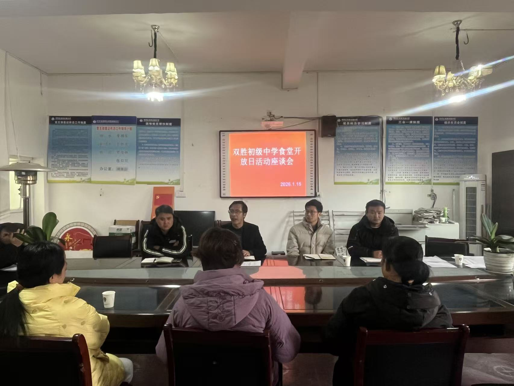 1月15日,双胜中学组织食堂开放日活动,通过“座谈审核、现场测评、实地参观、共同用餐”四个环节,深入推动食堂管理的公开透明。
