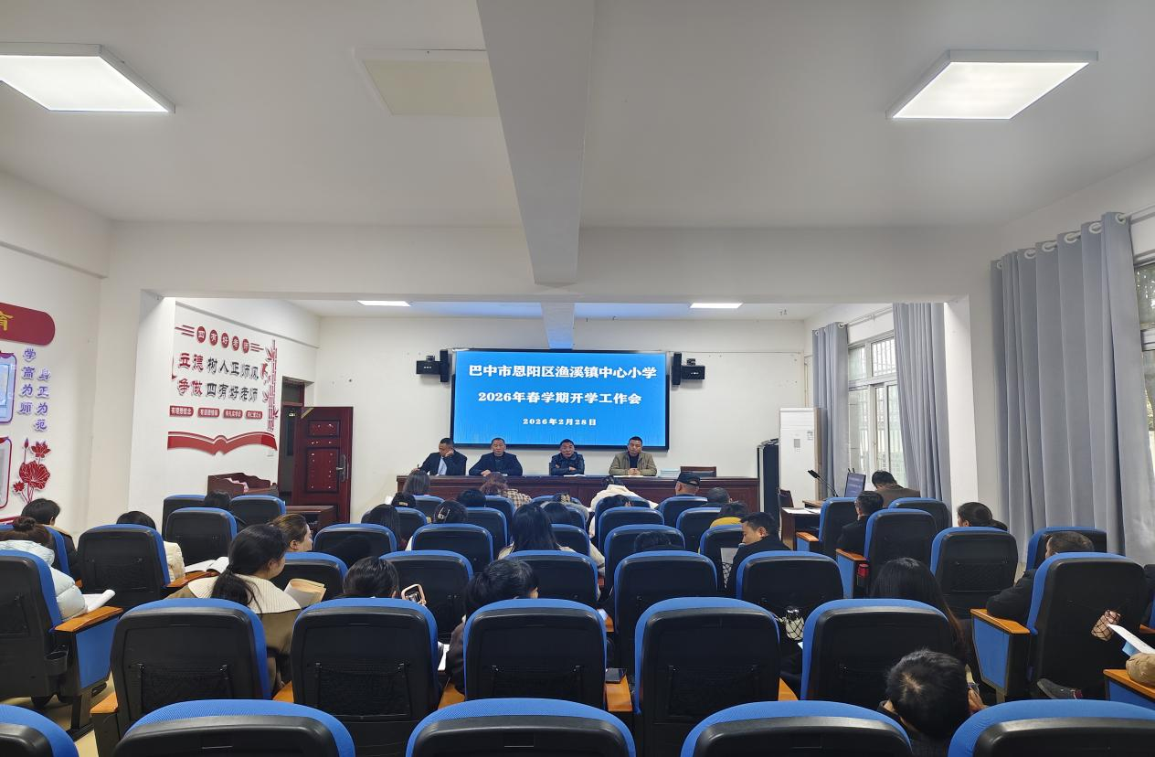 春潮涌动启新篇,奋楫扬帆正当时。为统筹部署2026年春学期各项工作,凝聚全校教职工奋进力量,以昂扬姿态迎接新学期到来,巴中市恩阳区渔溪镇中心小学召开2026年春学期开学工作会议,全体教职工齐聚一堂,共话发展、共商大计,会议既明确了新学期工作方向与重点,更点燃了全体教师干事创业的热情,校园上下洋溢着斗志昂扬、龙马精神的奋进氛围。