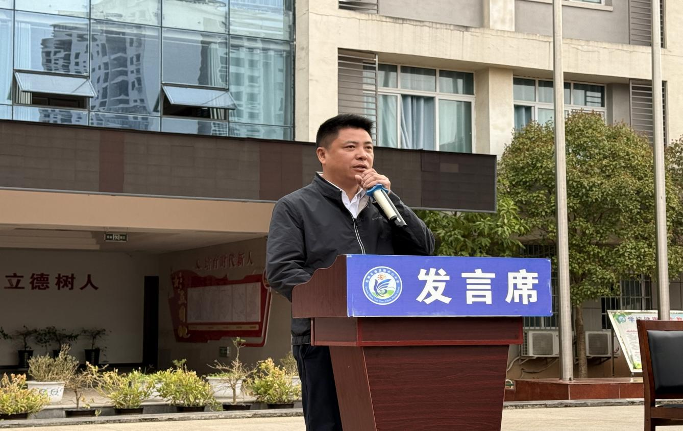升旗仪式后,学校党支部书记、校长曹斌发表新学期致辞,为全校师生送上殷切期许与奋进嘱托。致辞紧扣新学期主题,既回顾了学校过往的育人成果,又明确了新学期的发展目标与成长方向,勉励全体学子立鸿鹄之志、笃行实干之路,在行为习惯养成中锤炼品格,在勤学善思中增长才干;同时号召全体教师坚守教育初心,以匠心育桃李,用责任与爱心陪伴学生成长,共同为学校高质量发展凝心聚力。