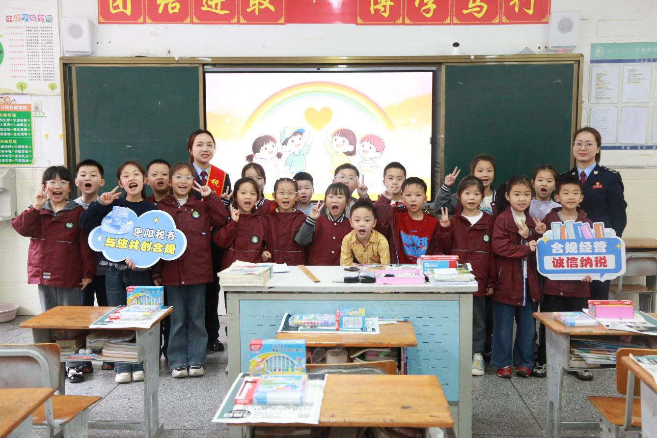 “原来我爸爸交的税,变成了我们学校新修的运动场!”“以后买东西我要提醒妈妈开发票,那是诚信纳税的‘小凭证’!”课堂上,同学们争相举手发言,童言稚语中透露出对税收“取之于民、用之于民”的朴素理解。宣讲队员还结合本地实例,讲述了恩阳大道、登科公园等身边地标背后的税收支撑,让孩子们真切感受到——税收,就在自己身边。