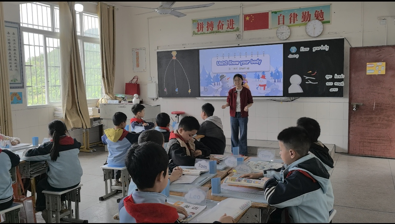 课堂展示环节,两节示范课各具特色、亮点突出。工作室罗杰老师执教四年级下册Unit 3《Little Chicken》,她以问题为导向,用生动的肢体语言和富有感染力的表情,结合AI动画、角色扮演等形式,引导学生感知故事内容、掌握核心词汇与句型,课堂氛围轻松活泼,学生参与度高。