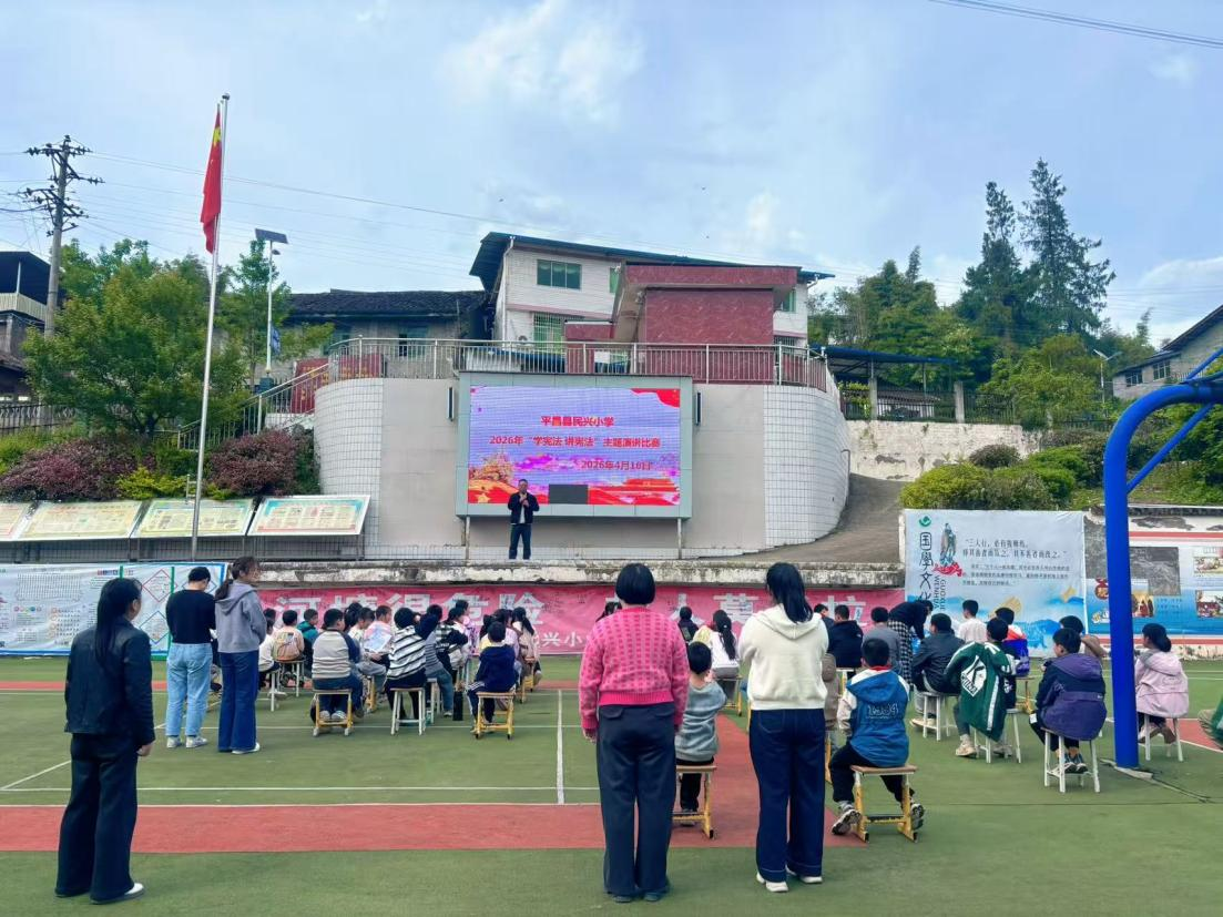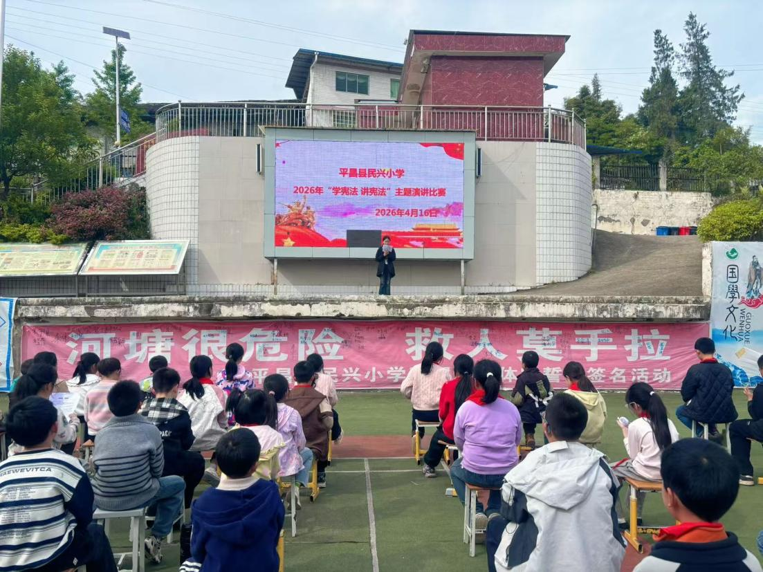 4月16日,平昌县民兴小学的操场成了孩子们“说宪法、讲宪法”的小舞台。“学宪法 讲宪法”主题演讲比赛在这里热闹开场,伴着春日暖阳,全校师生一起聆听小选手们的心声。
