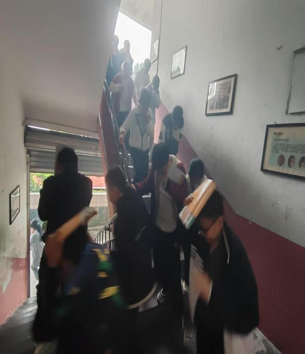 上午10时,校园模拟火情警报铃声准时急促响起,本次消防安全应急疏散演练正式拉开帷幕。模拟教学楼突发起火、浓烟快速蔓延实景场景,各楼层值守教师第一时间快速到位,沉着冷静引导现场秩序。全体学生严格遵循既定逃生路线,全程保持冷静有序,立刻弯腰低头、用衣袖与湿巾捂住口鼻,紧贴墙体右侧快速有序撤离,全程不喧哗、不打闹、不逆行、不滞留,快速远离火灾模拟危险区域。全体教职工分工联动、默契配合,全程护航疏导,高效规避楼道拥挤、摔倒等突发意外。短短数分钟内,全校师生全部安全撤离至校园空旷安全指定集结场地,各班级现场快速清点人数,第一时间向演练总指挥精准上报撤离情况,整场疏散撤离流程规范快速、井然有序,圆满达成预期疏散演练目标。