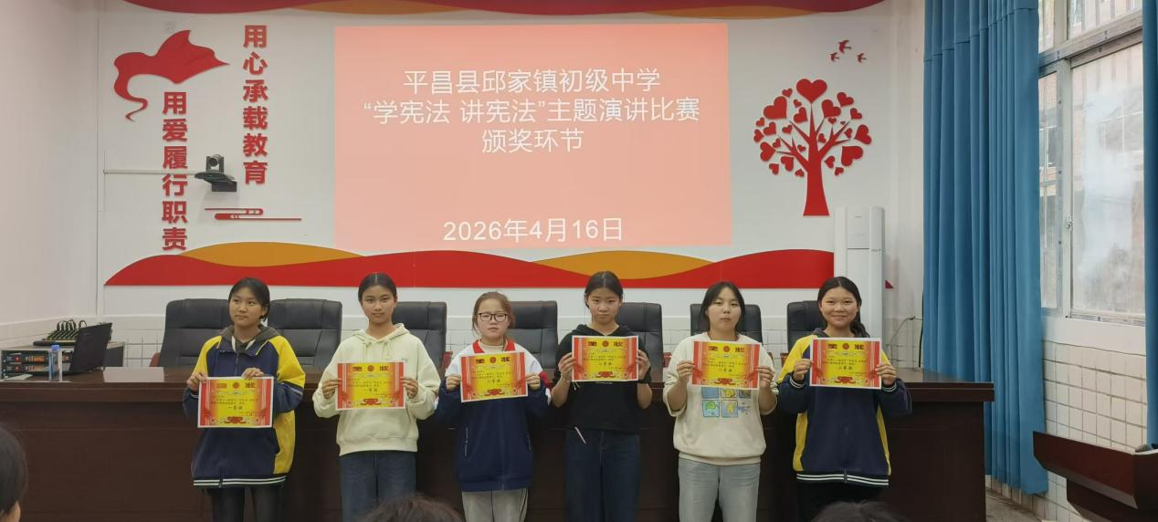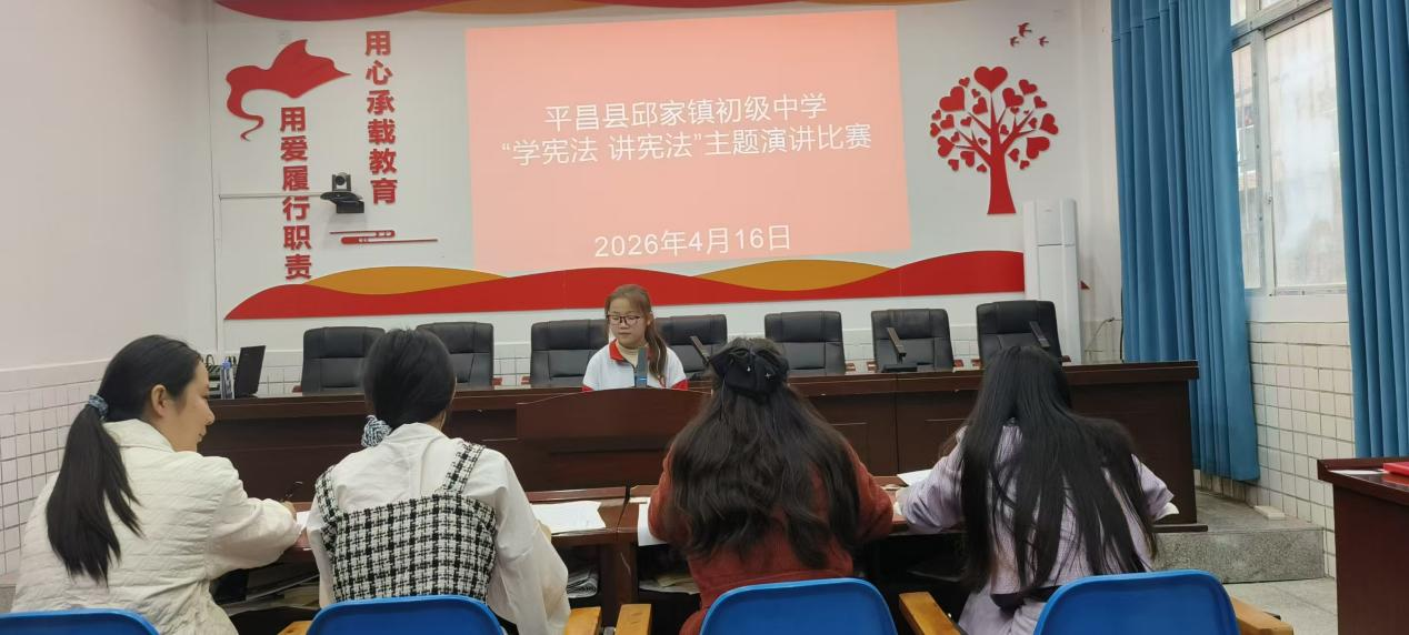 为深入学习贯彻习近平法治思想,全面落实宪法学习宣传教育要求与《青少年法治教育大纲》,加强以宪法为核心的法治宣传教育,引导学生争做宪法的忠实崇尚者、自觉遵守者、坚定捍卫者,4 月 16 日,平昌县邱家镇初级中学以 “宪法在我心中,法治伴我成长” 为主题,成功举办 “学宪法、讲宪法” 演讲比赛。