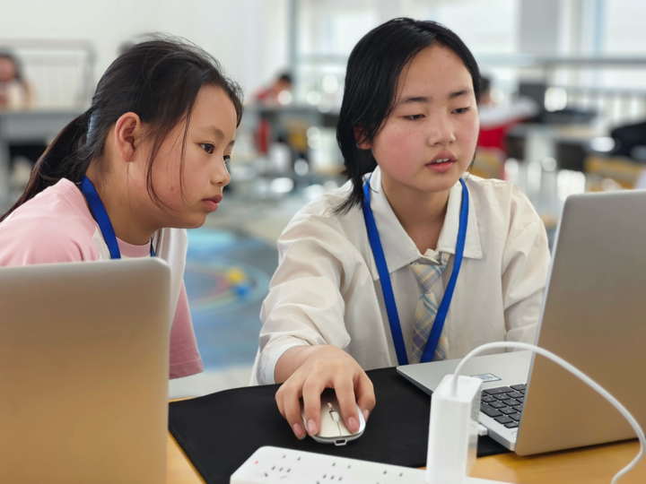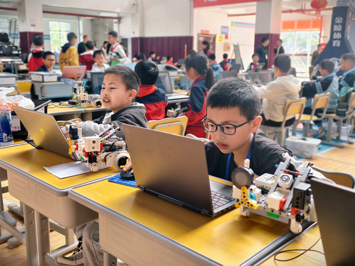 比赛现场,渔小学子沉着冷静、从容不迫。在**“红色之旅”项目中,孩子们巧妙将红色文化底蕴与现代数字技术融为一体,创意十足的作品赢得评委频频点头;在“超轨Super AI”**项目中,团队配合默契无间,操作精准流畅,充分展现了过硬的技术水平与良好的心理素质。赛场之上,他们自信昂扬、奋勇争先,用实际行动诠释了渔溪小学“勤学善思、笃行创新”的精神风貌。