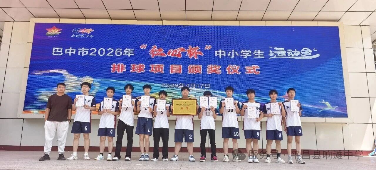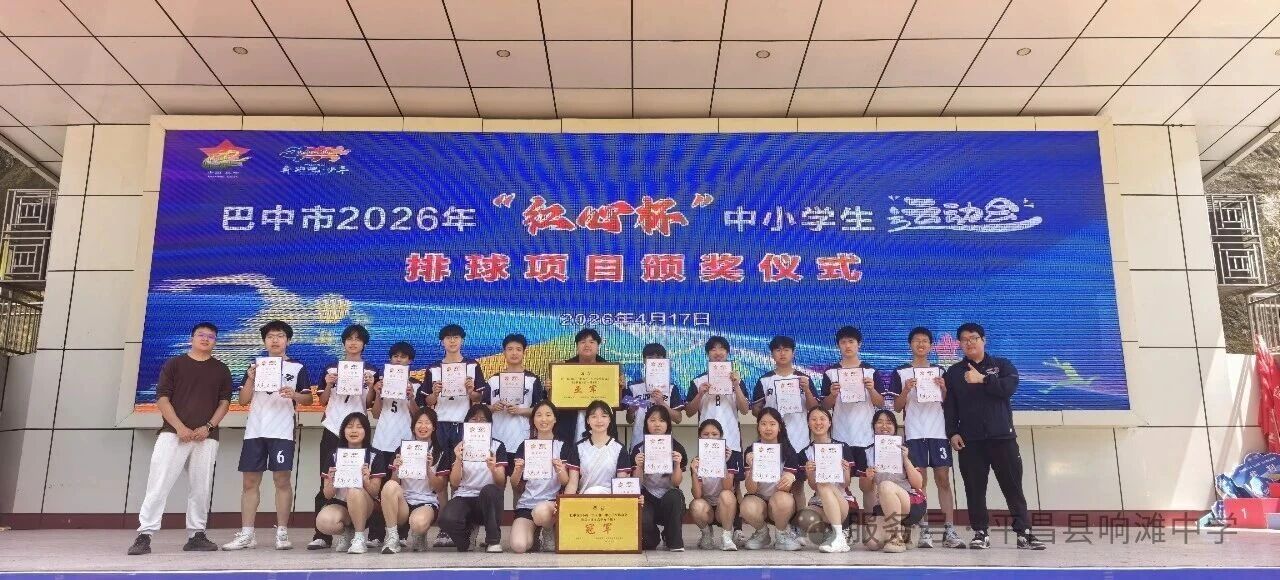 4月17日上午,巴中市2026年“红心杯”中小学生运动会排球赛事圆满收官。平昌县响滩中学排球队员们奋勇拼搏、力克群雄,高中女排成功卫冕、荣膺冠军,高中男排全力以赴、喜获亚军,以亮眼成绩再创学校体育竞技新辉煌。