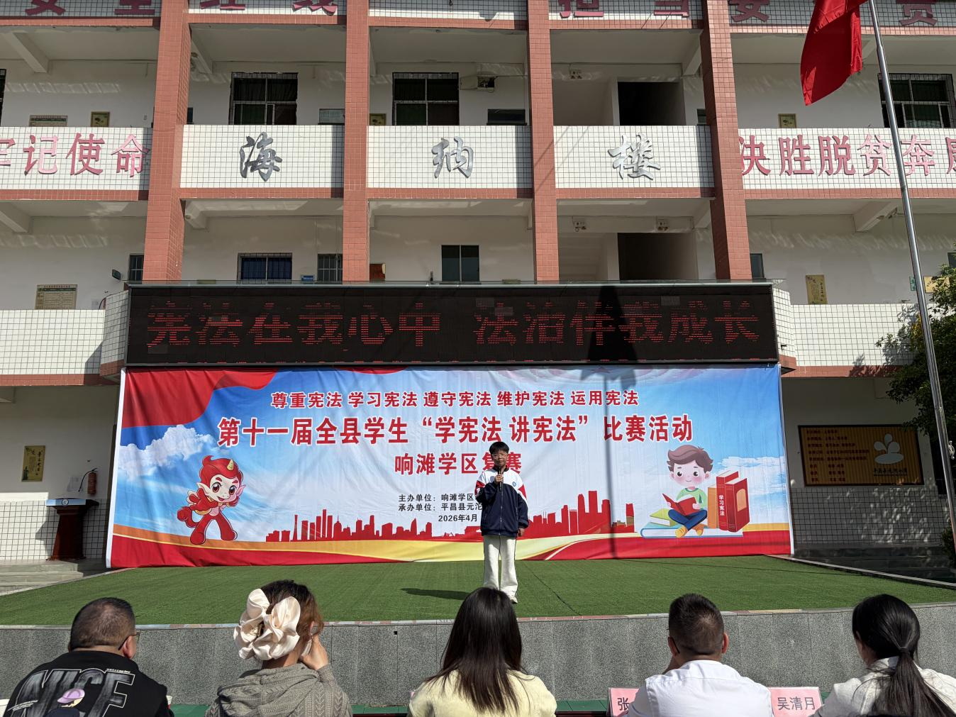 为深入学习贯彻习近平法治思想,大力弘扬宪法精神,推动校园法治教育走深走实,4月23日,第十一届全县学生“学宪法 讲宪法”比赛响滩学区复赛成功举办。学区内各中小学参赛选手同台竞技、以赛明法,掀起了青少年尊崇宪法、学习宪法、维护宪法的浓厚热潮。