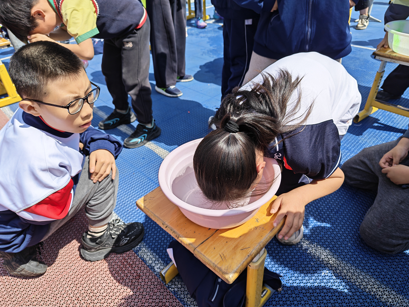 活动伊始,分管副校长曾浩作动员讲话。他指出,溺水发生时当事人无法呼救与挣扎,唯有切身体验窒息感,方能形成对危险水域的敬畏之心。在教师全程监护下,学生依次将口鼻浸入水中进行闭气体验。