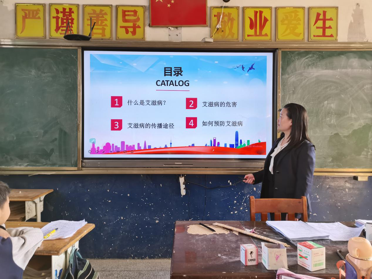 本次活动以主题班会形式进行宣教。活动中,各班主任依据学校统一制作的PPT,向学生科普了什么是艾滋病、艾滋病的病因、传播途径、危害及预防措施以及“红丝带”这一标志的来历、意义等知识,渗透养成良好健康生活习惯的重要性。同时引导学生消除“谈艾色变”的恐惧心理,了解握手、拥抱、共同生活和学习等一般不会传染艾滋病;教育学生要正确对待艾滋病人和病毒感染者,做到不惧怕、不歧视、不孤立。同时,学校还通过LED、宣传栏、红领巾广播站等阵地宣传艾滋病防治知识,全面营造师生共同防艾的良好氛围。