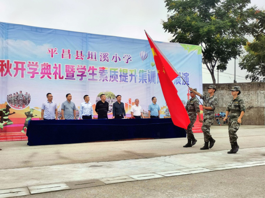 平昌县坦溪小学隆重举行“展军姿检验素质 树人奖激励师生”开学典礼