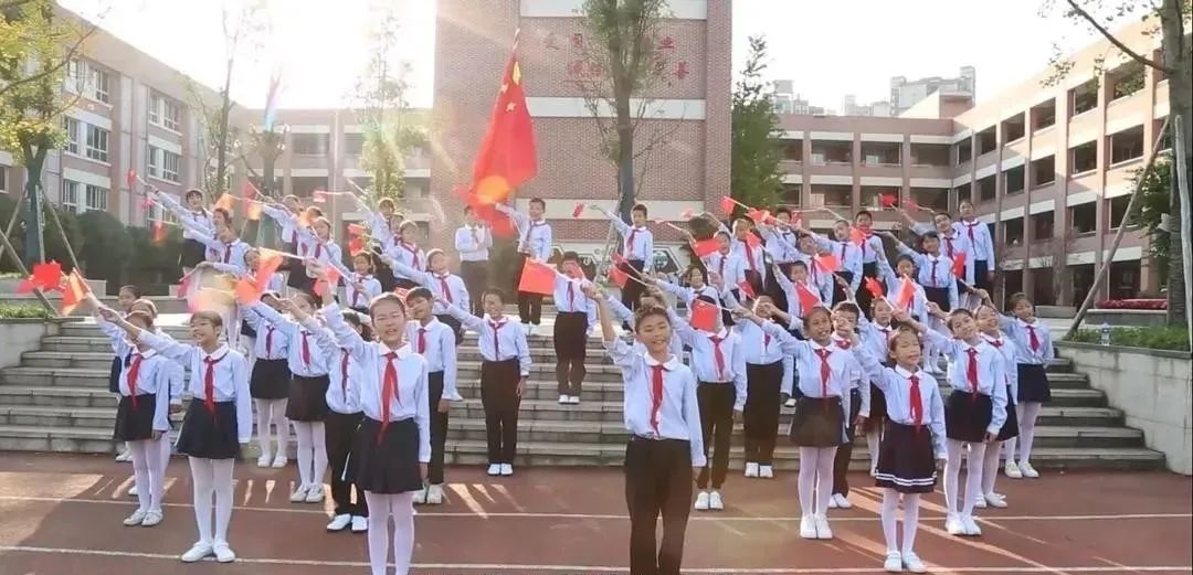 “党建+队建” 厚植红色基因。将“红色文化”融入校园文化建设,以“红色文化小广场”为载体,对学生进行入队教育、爱国主义教育。通过开展读红色书籍、唱红色歌曲、看红色电影、讲红色故事“四红”活动,让红色文化进一步浸润童心。