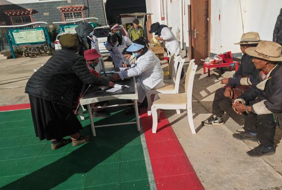 医务人员认真登记每一位群众的基本信息,资深藏医医师耐心地为村民把脉、验尿、开具处方、指导用药,免费测量血压,听取他们提出的问题,了解他们的病情病史,提出诊疗建议,细心叮嘱注意事项,并开展了相应的针灸、敷药涂擦等治疗。增强村民对藏医适宜技术的认识,让百姓真真切切地感受到藏医药健康服务“简、便、验、廉”的特色和优势,赢得了现场村民的一致好评。