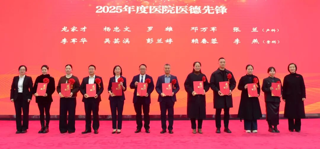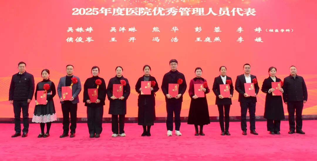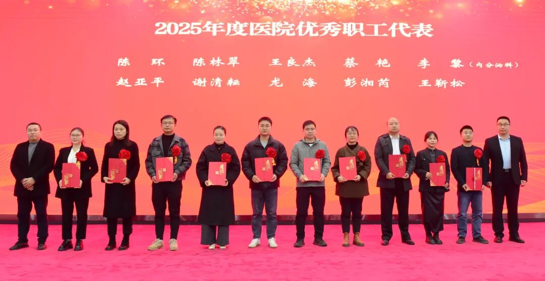 党委副书记陈朝学宣读表扬文件,对2025年工作中表现突出的先进集体和先进个人予以通报表扬,号召全院职工以受表彰对象为榜样,坚定理想信念、虚心钻研学习、勇于担当进取,把榜样的力量转化为干事创业的实际行动,为医院实现跨越式发展凝聚奋进合力、注入不竭动力。