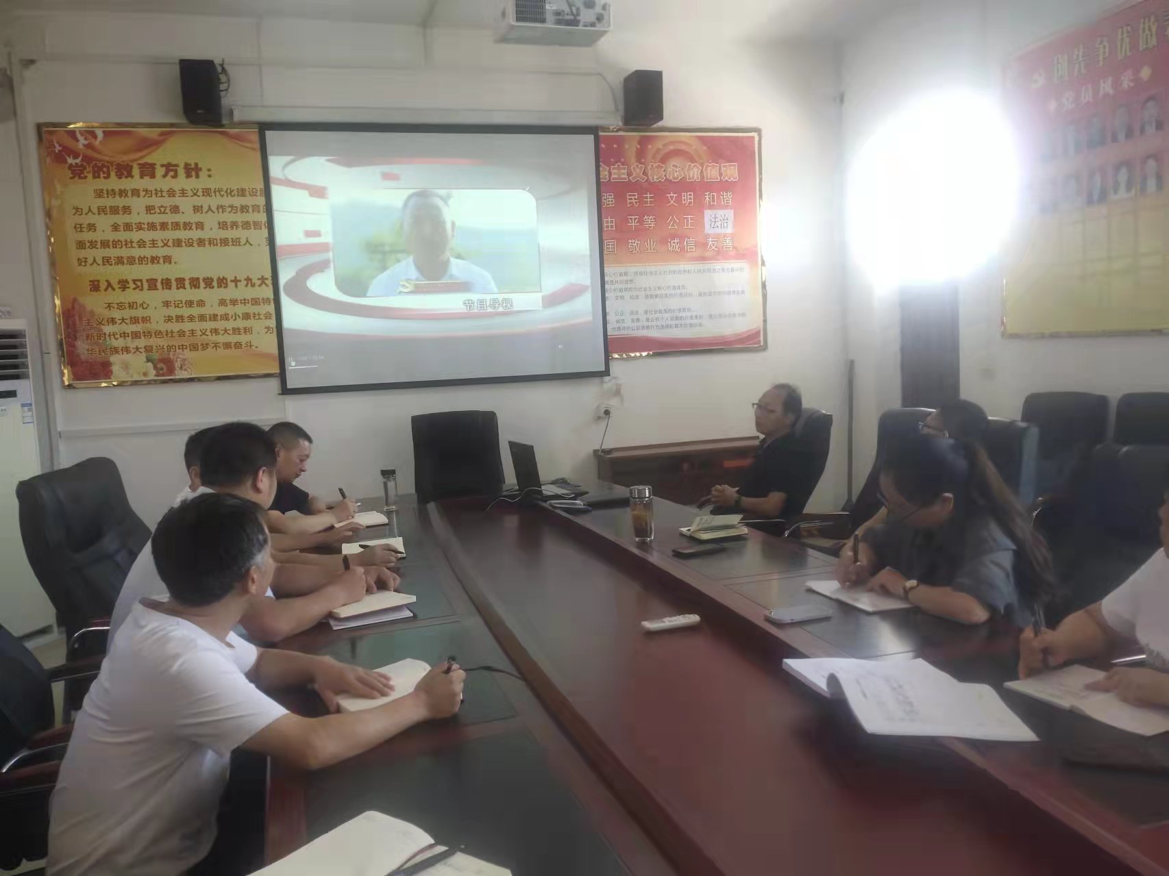 全体党员观看了《四川党建》的 “党员开会了”主题党日示范活动:阿坝州金川县卡拉脚乡二普鲁村党支部民主评议党员大会和 “书记龙门阵”主题坝坝会:推广新时代“春风经验”,争做“王家元”式好书记。观看视频后,大家围绕学校发展,纷纷发表观后感言。