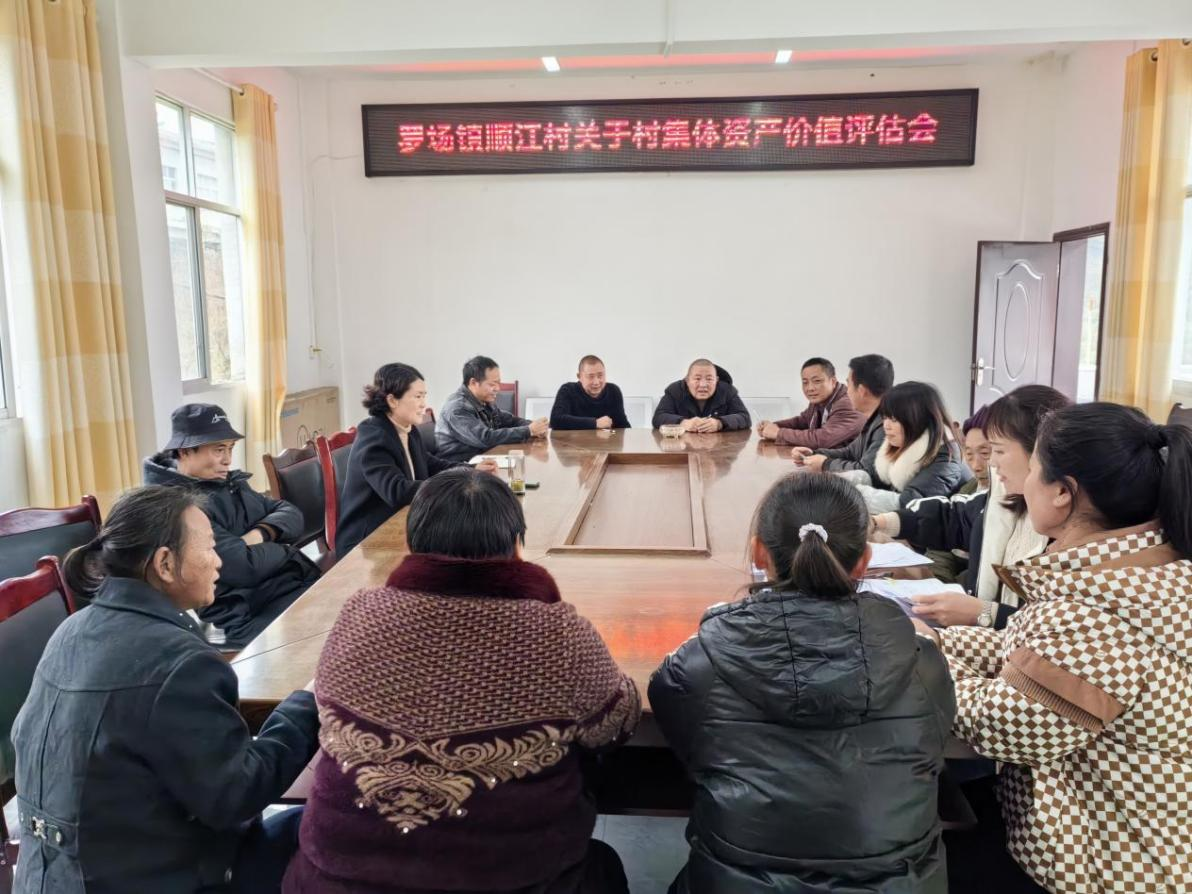 图为罗场镇顺江村召开村集体资产价值评估会