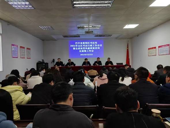 近日,恩阳区司法局召开2024年全区司法行政工作会暨全系统党风廉政建设和反腐败工作会。会议传达学习了习近平总书记对政法工作重要指示精神