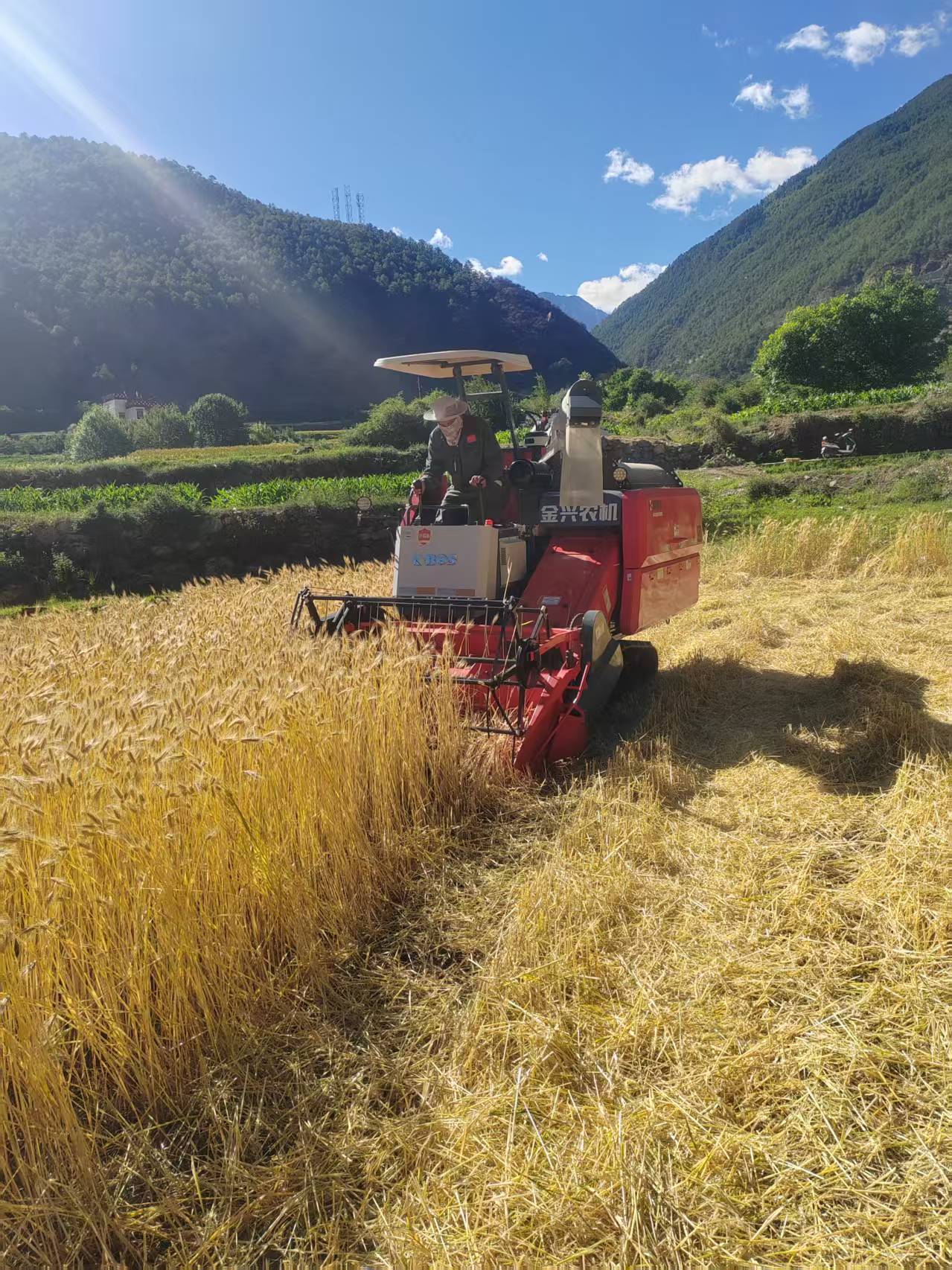乡城县然乌乡:履带收割机画出小麦丰收 “加速度”