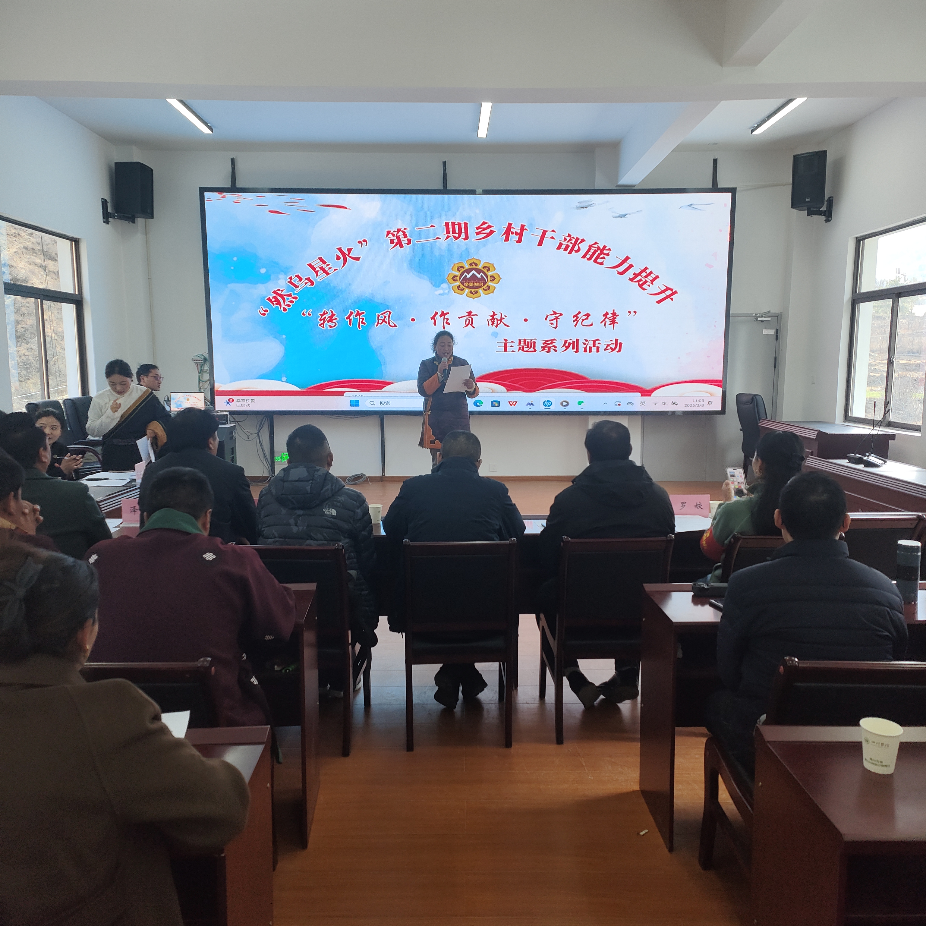 在此基础上,为推动乡村两级干部的使命担当,今年3月8日,然乌乡组织开展了“然乌星火”乡村干部能力提升活动,该主题活动包含上午村干部理论朗读,提升通用语言宣讲能力及下午乡干部阅读分享,提升读说写讲能力两部分,期间,还穿插问题抢答环节。通过活动的开展,乡村两级干部、后备力量及党员代表将理论学习与实践结合,强化纪律意识,提升了“铸牢中华民族共同体意识,民族团结进家庭”的服务能力,也为乡村振兴和共同富裕注入新动能,着力营造全乡民族团结一家亲的同频共振的良好氛围。